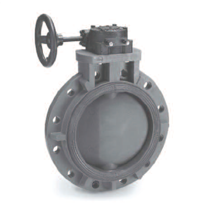 Butterfly valves in PVC available 2″- 8″ with manual lever or pneumatic or electric actuation packages. Gear-operated design in PVC available manual or actuated in 8″ to 24″ sizes.